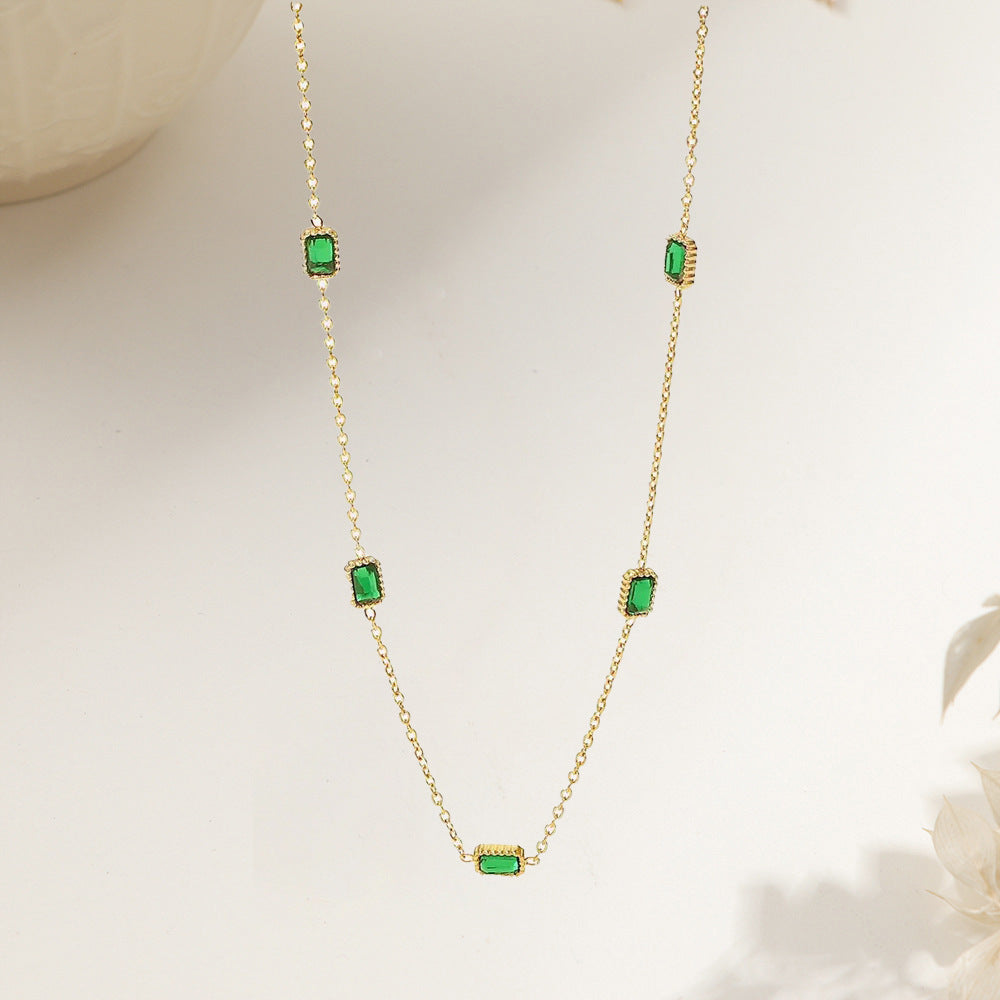 Color: Gold with Green Diamond Bracelet, Gold with Green Diamond Necklace