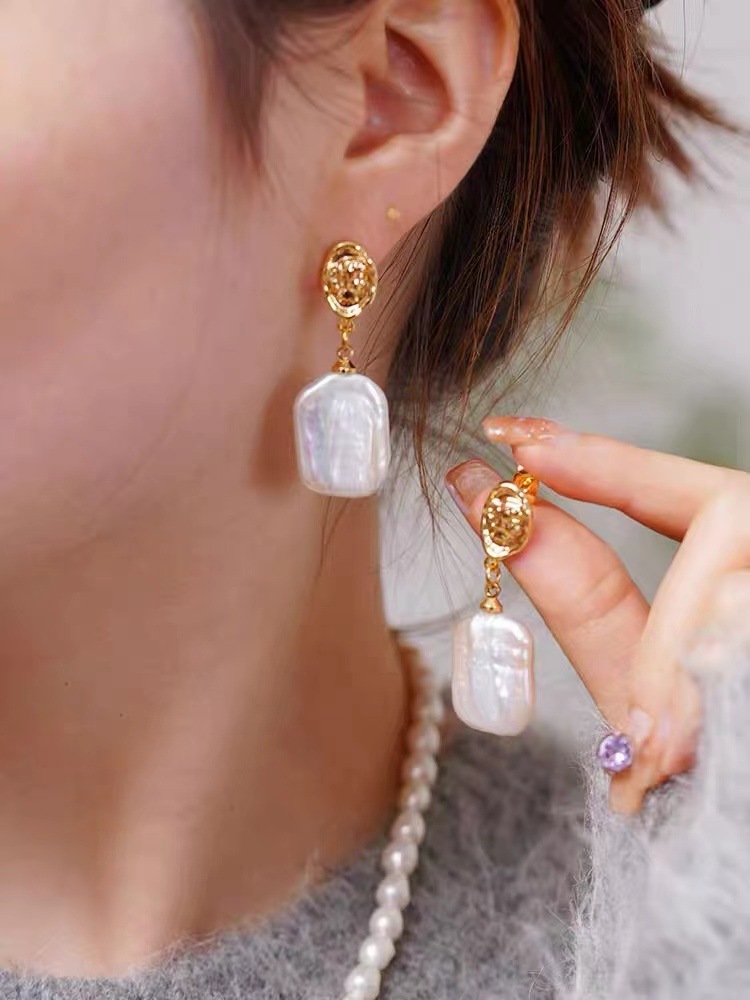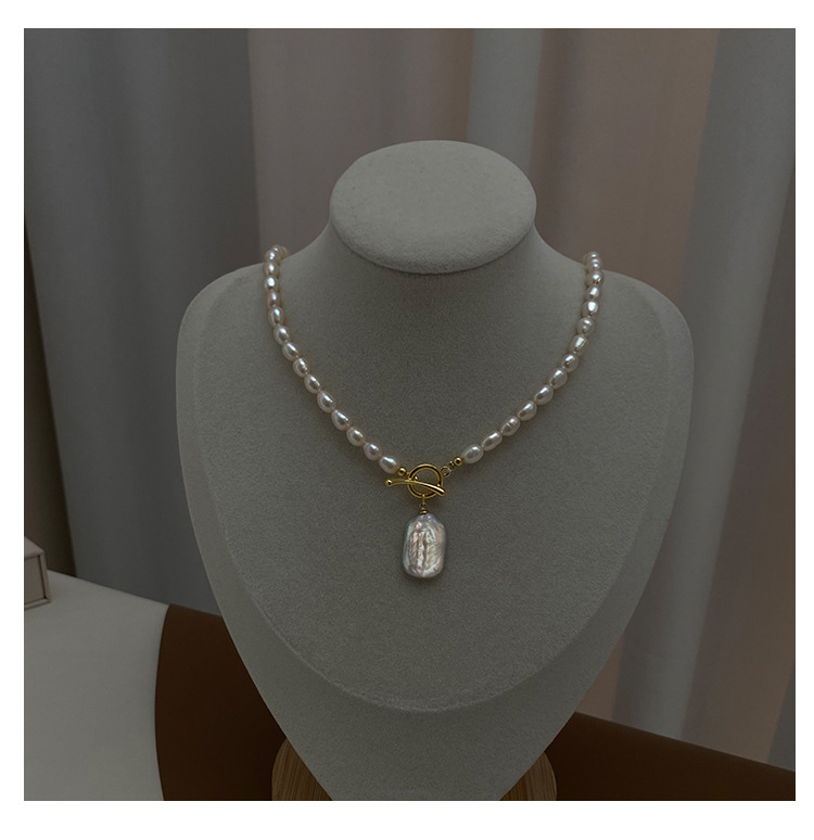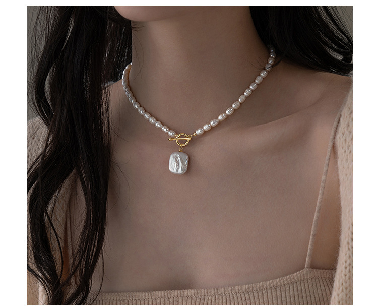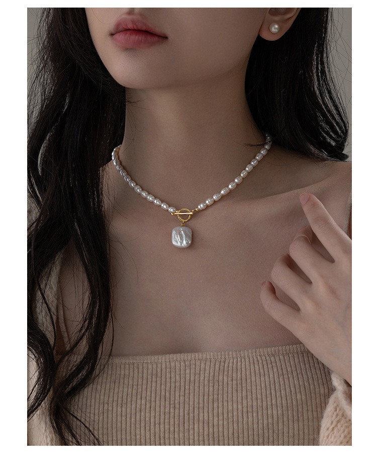 Natural Freshwater Pearl French-Style Square Pendant Necklace With A Luxe