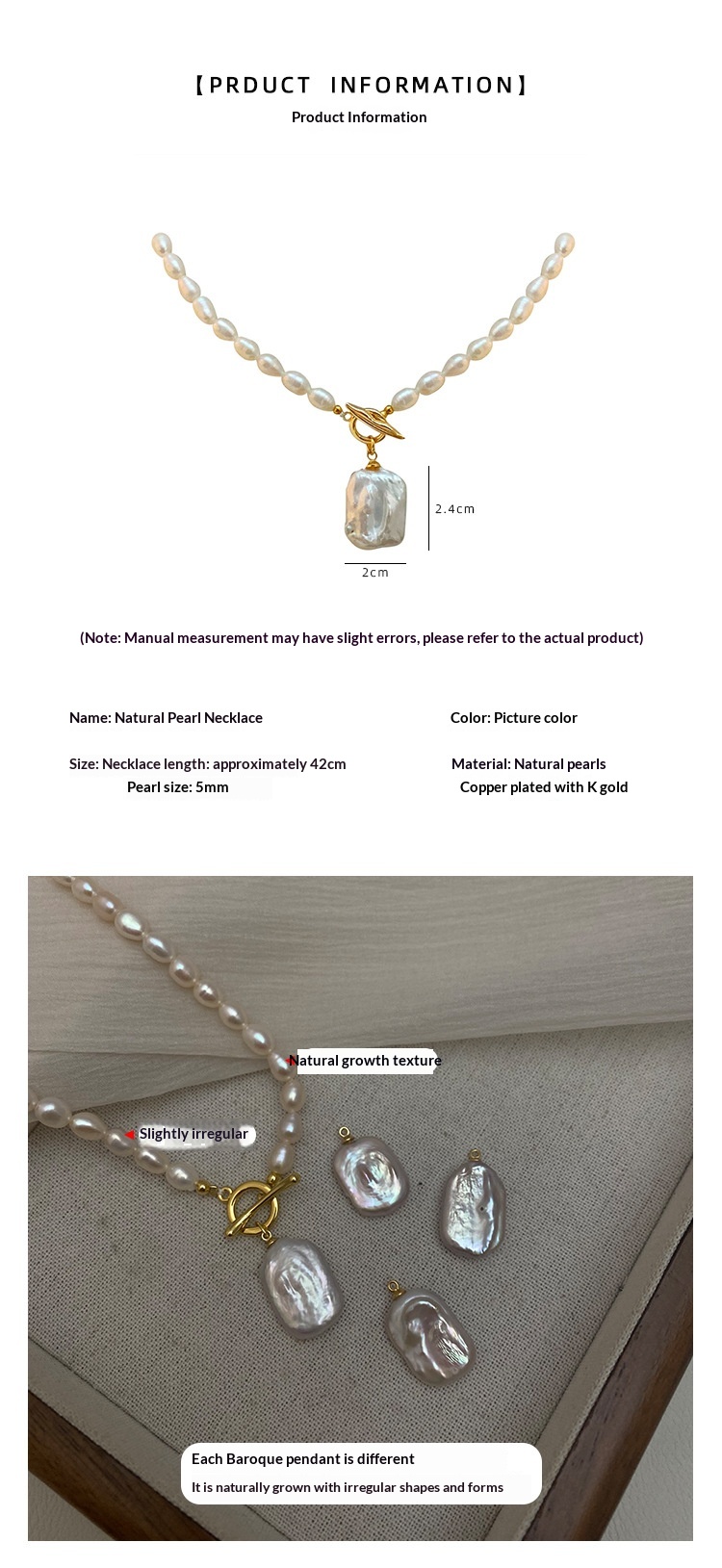 Color: Short style [40 cm, suitable for those under 55 kg], long style [48 cm, suitable for those over 70 kg], matching pearl stud earrings (S925 silver posts)