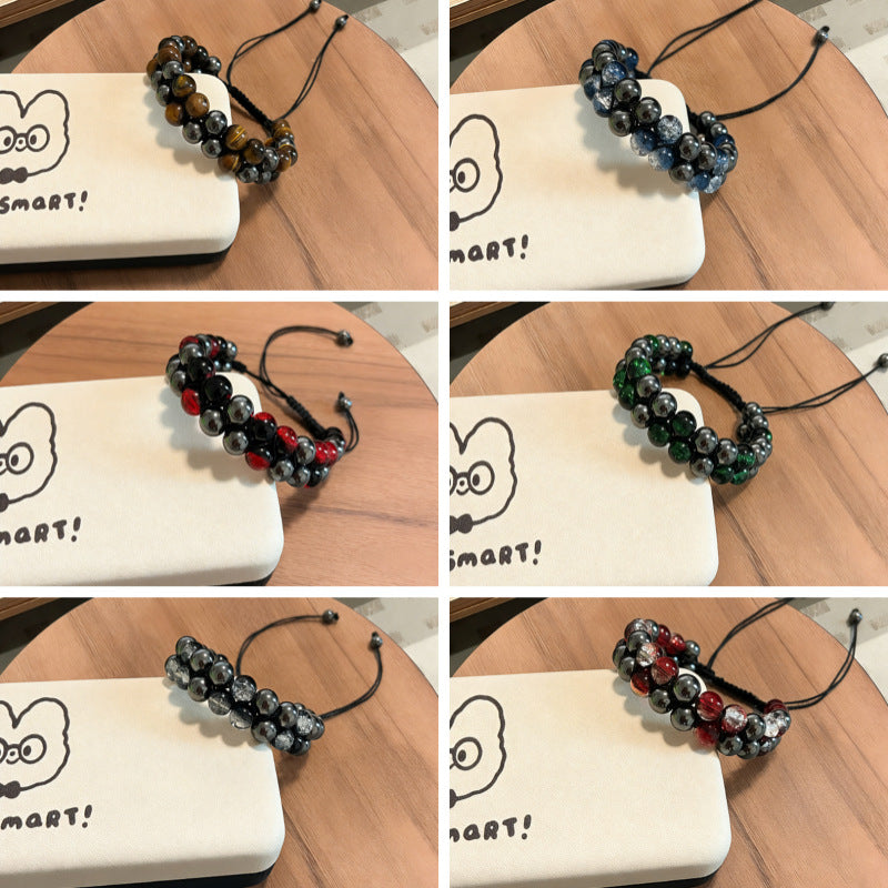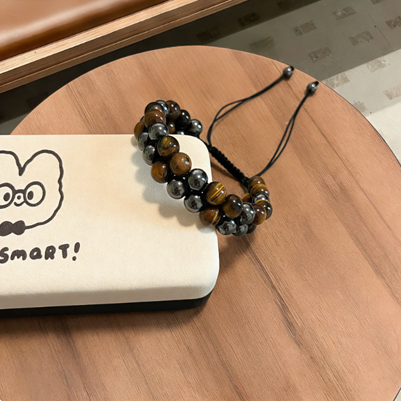 Natural Tigers Eye Braided Double-Layer Bracelet